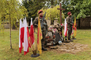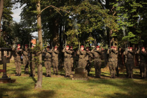 Po Apelu Pamięci, jaki odczytał oficer 6. Brygady Powietrznodesantowej, żołnierze oddali salwę honorową. Uczestnicy uroczystości swoją pamięć o Powstańcach okazali również złożeniem wieńców i wiązanek kwiatów. Na zakończenie prowadzący uroczystość Konrad Kulig poprosił zebranych o krótką modlitwę w intencji poległych i pomordowanych.