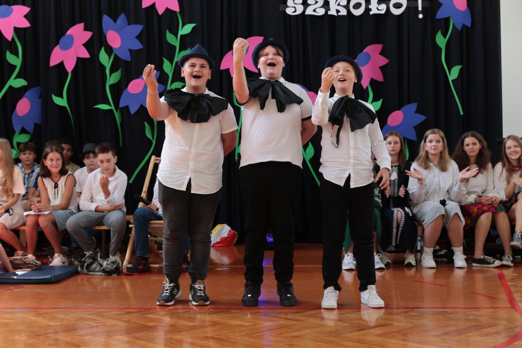 Gromkimi brawami zgromadzeni nagrodzili występ uczniów szkoły. Młodzi olkuszanie wspominali wyjazdy wakacyjne, dzielili się wrażeniami oraz nowymi doświadczeniami. Tęskniąc do słońca i wojaży znaleźli jednak nutkę optymizmu w rozpoczynającym się roku szkolnym – możliwość spotkań z przyjaciółmi, zdobywania przydatnej wiedzy i perspektywę sukcesów, które w roku szkolnym 2024/2025 są na wyciągnięcie ręki.
