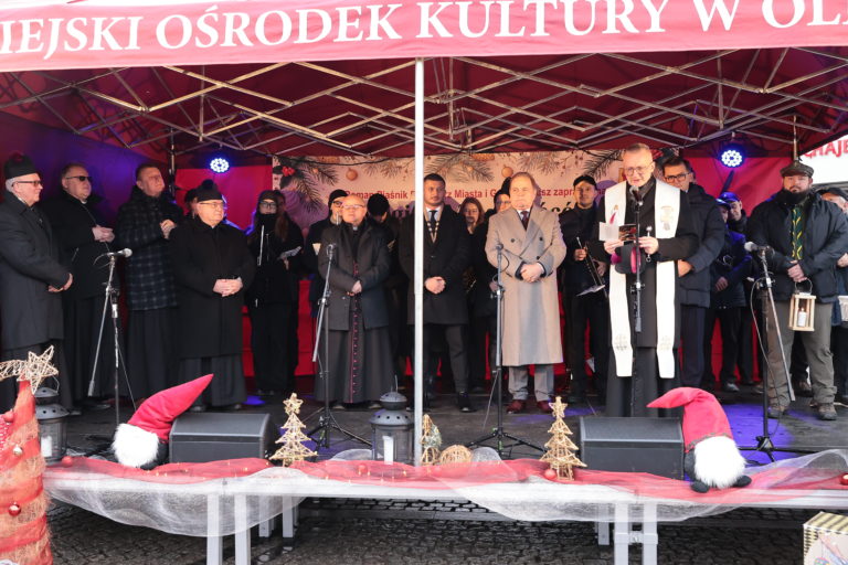 Uroczystego otwarcia wydarzenia dokonał burmistrz Roman Piaśnik. Kulminacyjnym momentem Wigilii była wspólna modlitwa i łamanie się opłatkiem. Poświęcenia opłatków dokonali ks. dziekan Henryk Chmieła oraz ks. dr Mariusz Karaś. Życzenia zgromadzonym Mieszkańcom i Gościom złożyli również poseł Łukasz Kmita oraz starosta olkuski Bogumił Sobczyk. Ważnym i symbolicznym akcentem było także przekazanie Betlejemskiego Światła Pokoju, które komendant ZHP Mikołaj Koch przekazał Mieszkańcom Olkusza – symbolicznie na ręce burmistrza – jako znak jedności, pokoju i nadziei.