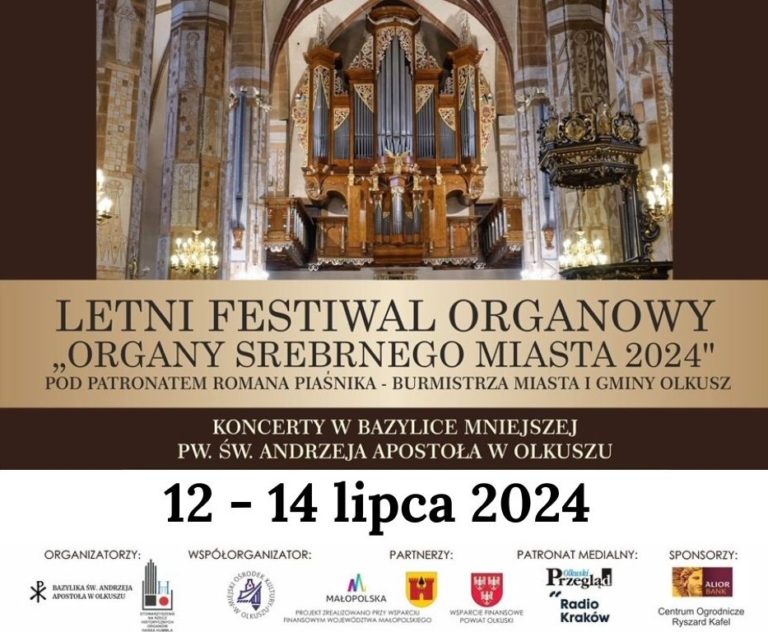Już w piątek 12 lipca w Bazylice Mniejszej pw. św. Andrzeja Apostoła w Olkuszu odbędzie się pierwszy koncert w ramach Letniego Festiwalu Organowego „Organy Srebrnego Miasta 2024” pod patronatem Romana Piaśnika Burmistrza Miasta i Gminy Olkusz.