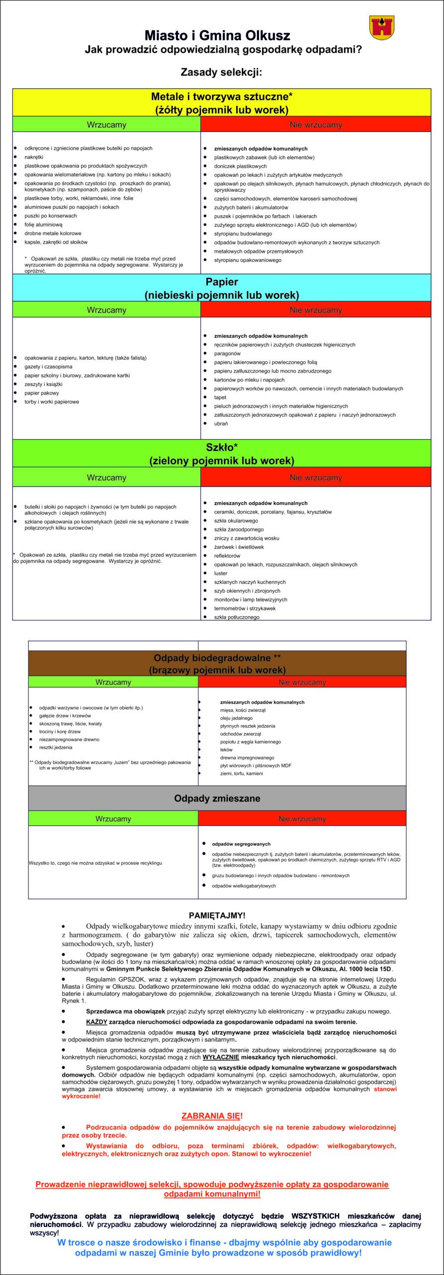 Harmonogram zbiórki odpadów wielkogabarytowych, zużytego sprzętu elektrycznego i elektronicznego oraz opon (z wyłączeniem opon rolniczych i ciężarowych, kół samochodowych i elementów karoserii oraz tapicerek samochodowych) z terenu Miasta i Gminy Olkusz